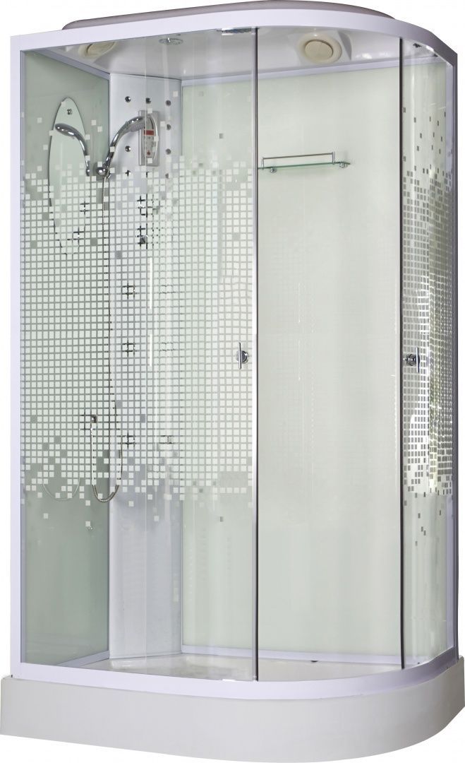 Создать приватное душевое пространство позволит душевая кабина Niagara NG-303-01L. Особенность коллекции – дверное полотно с мозаичным узором. Центральная панель, на которой размещены 3-режимный смеситель, пульт управления и гидромассаж, выполнена из пластика. В комплекте душевой гарнитур с трехфункциональной лейкой, полка и зеркало.
