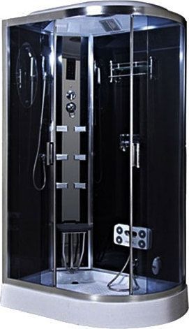 Душевая кабина Niagara NG-904-01L с тонированным дверным полотном заинтересует ценителей нестандартных решений. Смеситель подает воду в четырех направлениях – на верхний душ, ручную лейку, гидромассаж спины и ног. Имеется сиденье для удобного расположения, предусмотрено освещение и система вентиляции. Сенсорный пульт управления находится на центральной пластиковой панели. Внутренняя высота кабины составляет 202 см.