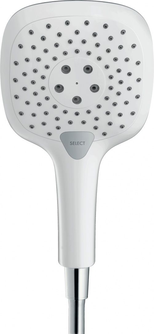 Душевая лейка из серии Hansgrohe Raindance Select E представляет собой многофункциональную насадку, выполненную в стиле хай-тек. Диск необычной – квадратной – формы. Лейка обеспечивает подачу воды в трех режимах: RainAir, CaresseAir и Mix. С помощью удобно расположенной на корпусе кнопки Select каждый сможет настроить струю для себя в зависимости от предпочтений. Инновационная технология AirPower буквально подмешивает к воде воздух – струя становится мягкой и нежной. Вы наслаждаетесь душем, при этом более рационально используете ценный ресурс без потери качества потока.Улавливающий фильтр не допускает попадания в воду примесей. Ухаживать за изделием легко. Глянцевую поверхность достаточно протереть салфеткой, а система QuickClean помогает мгновенно очистить форсунки душевой лейки от известкового налета. Модель изготовлена из влагостойкого пластика, поэтому отличается небольшим весом. Чтобы увеличить срок службы и избежать механических повреждений, на поверхность устройства нанесен специальный защитный слой цвета «хром».