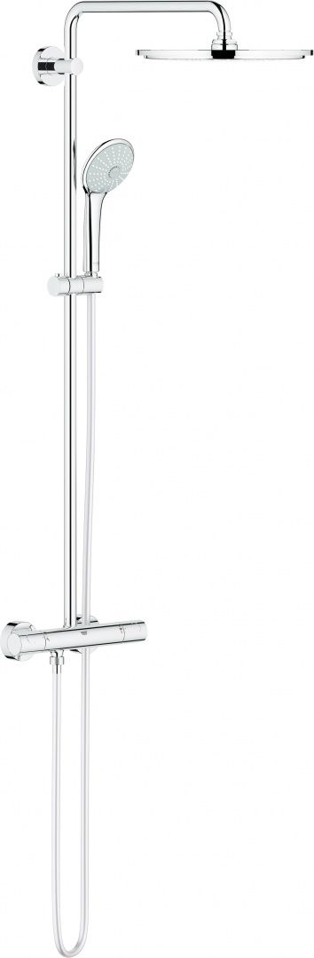 Современная душевая стойка немецкого производителя Grohe выполнена в современном стиле. Эстетичный внешний вид данного устройства сочетается с его великолепной функциональностью. Верхний душ с режимом струи «дождь» поможет снять накопившееся напряжение за день. Ручной душ переключается между тремя режимами: «дождь», «дождь с функцией экономного расхода воды», «восстанавливающий массаж». Эргономичную металлическую рукоятку GROHE MetalGrip удобно держать мокрой и даже намыленной рукой. Фирменная технология GROHE TurboStat® смесителя-термостата обеспечивает превосходный поток воды установленной температуры, а встроенный ограничитель температуры поможет избежать внезапного ошпаривания при принятии водных процедур. Технология GROHE DreamSpray® гарантирует, что поток воды из каждой душевой форсунки будет одинаковым и равномерным. Безукоризненная функциональность сохранится на протяжении всего срока службы душевой системы. Все металлические детали выполнены из латуни, стойкой к воздействию коррозии. Внутренний охлаждающий канал и система против известковых отложений также способствуют долговечности конструкции. Фирменное хромированное покрытие не тускнеет со временем, а уход за ним крайне прост – достаточно протереть мягкой салфеткой.