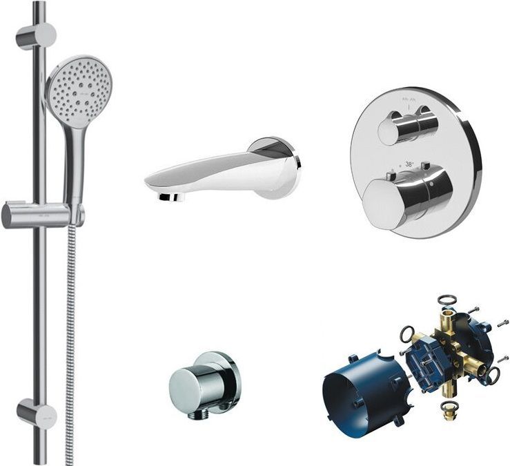 состав к-та: душевая лейка, душевая штанга, излив, смеситель, шланг для душа, шланговое подключение