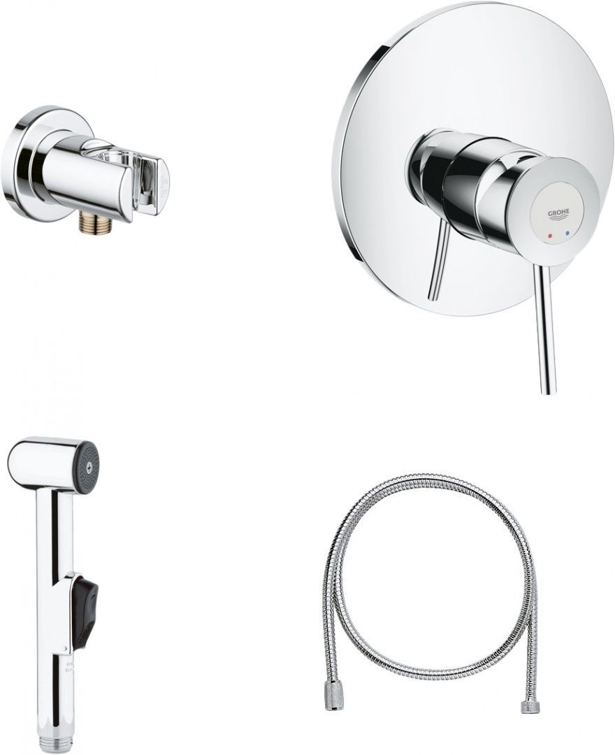Душевой комплект, состоящий из смесителя для настенного монтажа, гигиенического душа и компактного держателя, выдержан в современном стиле. Все устройства отличаются великолепным немецким качеством и приятным дизайном. Смеситель располагается на тонкой круглой металлической пластине. Температура и напор воды регулируются плавным поворотом рычага. Расход воды ограничивается до 2,5 л/мин. Все детали комплекта выполнены из первоклассной антикоррозийной латуни с фирменным хромированным покрытием. Для очистки от мыльных разводов достаточно протереть поверхность мягкой салфеткой.