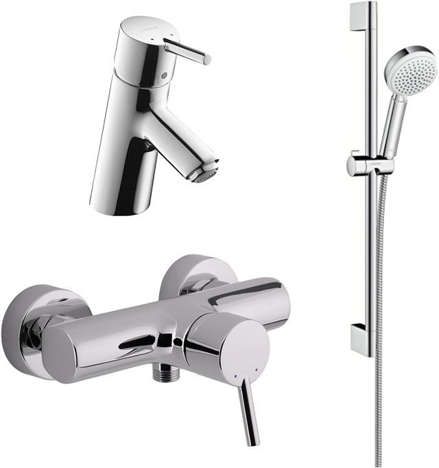 Комплект предназначен для оборудования современной ванной комнаты. Все изделия выполнены из прочной латуни с износостойким покрытием, которое не царапается и остается блестящим долгие годы использования. Смеситель Hansgrohe Talis S 32620000 для душа снабжен керамическим картриджем и удобным рычагом, который позволяет плавно регулировать интенсивность потока воды и его температуру. Смеситель Hansgrohe Talis S 32020000 для раковины оснащен керамическим картриджем и функцией экономии расхода воды. Управляется рычагом. Длина излива составляет 10 см. Встроенный сетчатый аэратор делает струю воды мягкой и комфортной. В душевой гарнитур Hansgrohe Crometta 100 Vario 26651400 входит ручная лейка, шланг и держатель. Лейка оснащена четырьмя режимами струй, что делает ее использование комфортным. Переключение осуществляется вращением душевого диска. Высота держателя – 66,9 см, длина шланга – 160 см.