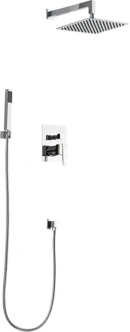 состав к-та: верхний душ, душевая лейка, кронштейн для верхнего душа, настенный держатель, смеситель, шланг для душа, шланговое подключение