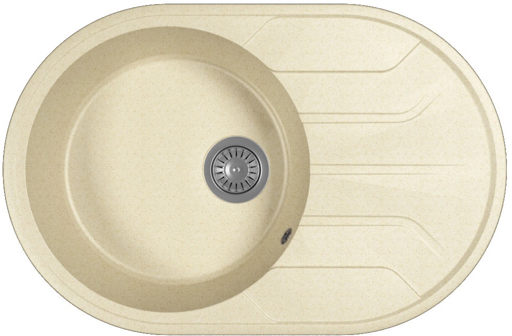Габариты мойки (ДхШхВ,мм): 760х500х197;;Размеры чаши (мм): D430, глубина 180;;Материал - литой мрамор (CM);;Дополнительные отверстия под аксессуары;;Модель оборачиваемая.