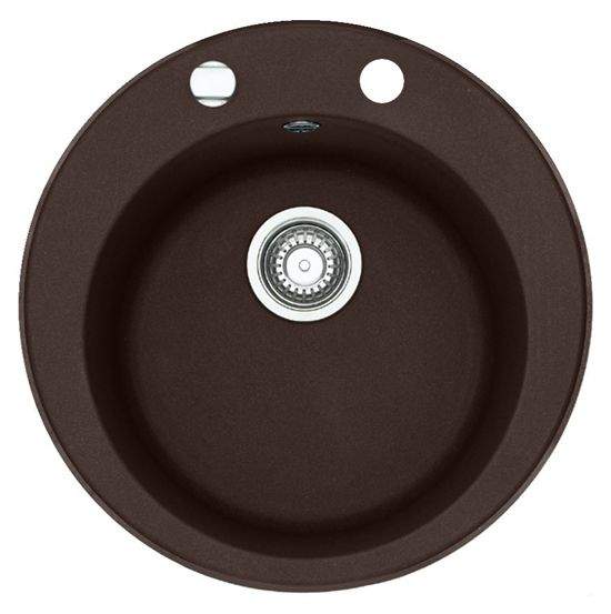 Для оснащения современной кухни отлично подойдет круглая мойка Ronda ROG 610-41 немецкого производителя Franke, выполненная в цвете шоколад. Изделие из искусственного гранита отличается надежностью и простотой в уходе. Поверхность хорошо поглощает звук, поэтому даже при сильном напоре воды нет раздражающего шума. Царапины и небольшие повреждения можно убрать при помощи полировки. Для смесителя предусмотрена специальная полочка.