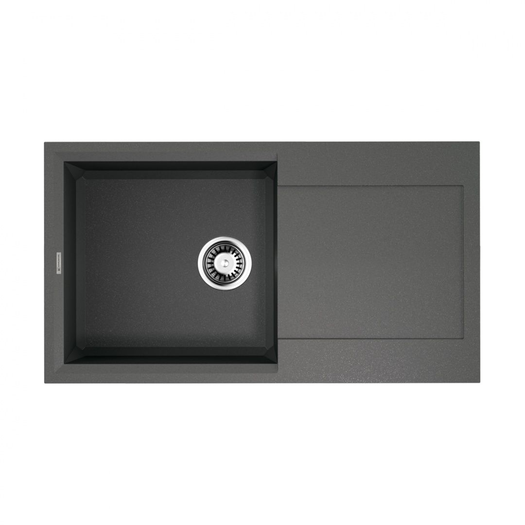 • Мойка черного цвета создана из материала «Tetogranit Metal». В его составе: акриловая смола и натуральный гранит с добавлением металлических частиц, которые придают блеск и мерцание поверхности  мойки. «Tetogranit Metal» отличается максимальной устойчивостью к температурным перепадам, ударам, царапинам и пятнам;