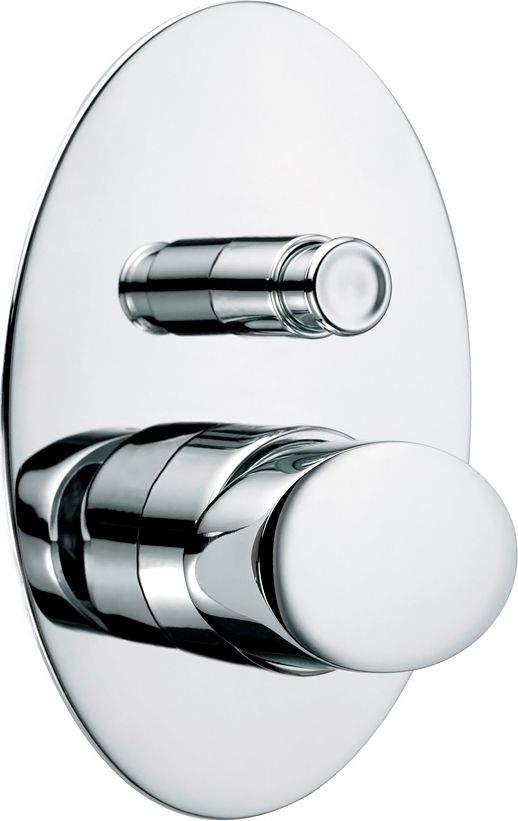 Верхняя кнопка позволяет направить поступающую воду в излив или верхний душ. Ручка, расположенная под кнопкой, поднимается вверх для регулировки напора, поворачивается влево для увеличения, вправо - для уменьшения температуры воды.