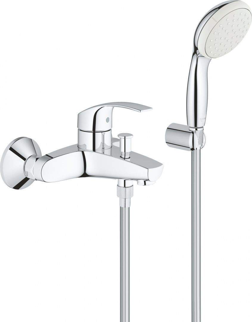 В комплект входят смеситель и лейка ручного душа. Металлические элементы выполнены из антикоррозионной латуни, благодаря чему изделия будут служить долго и бесперебойно. Кроме того, хромированное покрытие смесителя Grohe StarLight® способствует сохранению блеска его поверхности, а также легкости чистки – достаточно протереть его сухой салфеткой. Фирменная технология Grohe SilkMove® обеспечивает плавный ход рычага смесителя на протяжении всего срока службы изделия. Ручной душ, предполагающий один вид струи, оснащен небольшим настенным креплением.
