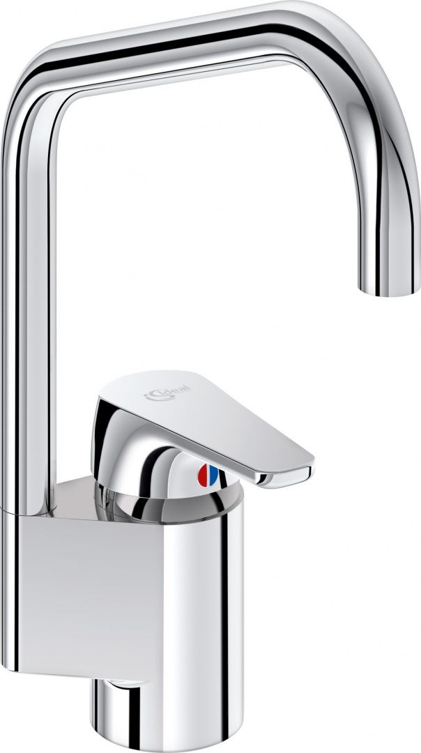 Смеситель Ideal Standard Cerasprint B9576AA заинтересует ценителей нестандартного дизайна. Модели свойственны массивный латунный корпус и трубчатый поворотный U-излив. Внутри находится картридж IS 47 мм с регулируемой функцией экономии воды Click и ограничителем максимальной температуры. В излив встроен скрытый аэратор Cashe M16,5x1, насыщающий струю воздухом. Система облегченного монтажа Easy-Fix с пластиковой опорной пластиной обеспечивает стабильную установку модели на мойку из нержавеющей стали.