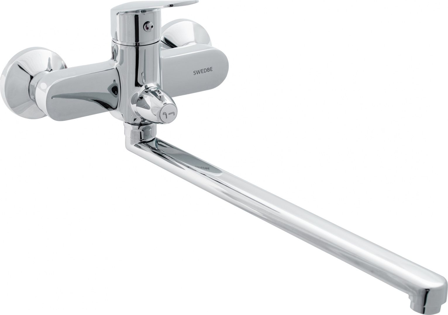 Для универсального смесителя Swedbe Ares 1950 характерны длинный поворотный излив и прочный корпус, изготовленный из латуни с высоким содержанием меди. Однорычажная модель снабжена керамическим картриджем Sedal (Испания) и встроенным аэратором Neoperl для подачи равномерной струи. Подключение к системе водоснабжения облегчают эксцентрики, закрытые хромированными декоративными накладками. Изделие произведено в соответствии с европейскими стандартами качества и экологического контроля и служит в течение 25 лет.