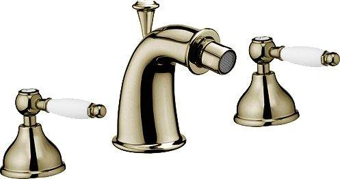 Смеситель для биде на три отверстия с дистанционным сливом, отделка бронза. Керамический картридж, подводка стандарта 1/2”.