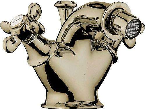 Смеситель для биде с дистанционным сливом, отделка бронза. Керамический картридж, гибкая подводка стандарта 1/2”, длина шлангов 370 мм.
