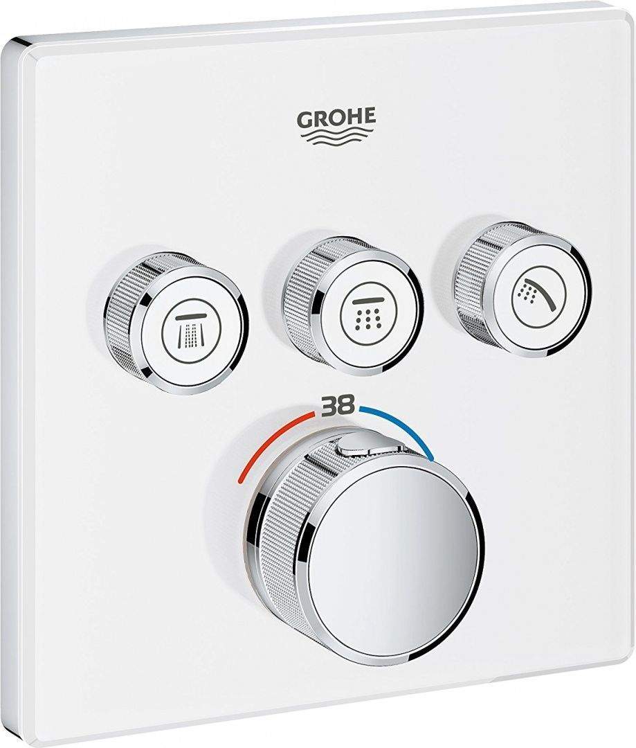 Встраиваемый элегантный термостат обладает необычным цветом «белая луна». На виду остается только небольшая металлическая панель с тремя кнопками SmartControl и регулятор температуры воды. При нажатии «умных» кнопок происходит включение/выключение воды в выбранном устройстве – ручном, верхнем душе или изливе для ванны, их поворот регулирует напор от минимального водосберегающего EcoJoy до максимального. Благодаря фирменной технологии GROHE TurboStat® будет обеспечена подача воды заданной температуры, а стопор безопасности, останавливающий поток при повышении температуры выше 38 °С, поможет уберечься от внезапного ошпаривания. Металлические элементы термостата выполнены из латуни – материала, стойкого к воздействию коррозии. Фирменное хромированное покрытие GROHE StarLight® не тускнеет со временем и сохранит безупречный блеск на долгие годы.