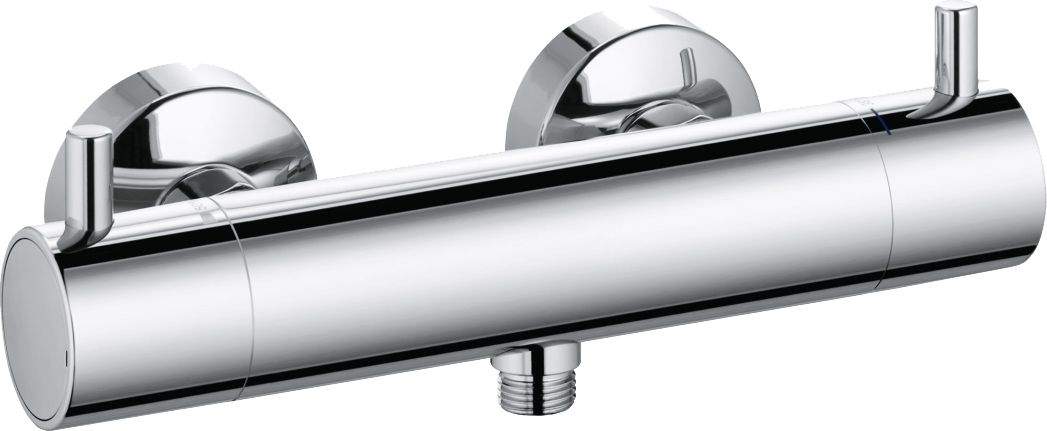 Термостат Kludi Bozz выделяется своей лаконичностью и строгим изяществом. Корпус выполнен из хромированной латуни в стиле хай-тек. Для максимально точной настройки температуры используются вентили с рукоятками, удобными для захвата рукой. Ограничитель температуры воды до 38 °С не допустит ожогов при принятии душа. Установленные фильтры очищают поток от посторонних примесей. Оборудование относится к I классу шума и работает очень тихо.