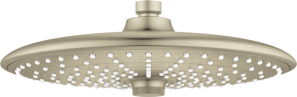 Стильный верхний душ Grohe Euphoria SmartControl, выполненный в цвете матового никеля, – элегантная модель для современной ванной комнаты. Он оснащен тремя видами струй, каждый из которых обозначен небольшой бороздкой: Rain, SmartRain и Jet. Их включение осуществляется с помощью центральной кнопки на душевом диске. Технология EcoJoy снижает расход воды до 9,5 л/мин, помогая экономить ценные ресурсы без ущерба для комфортного принятия душа. Внутренний охлаждающий канал предотвращает нагревание поверхности, защищая от обжигания. Шаровой шарнир позволяет регулировать наклон диска в нужную сторону.