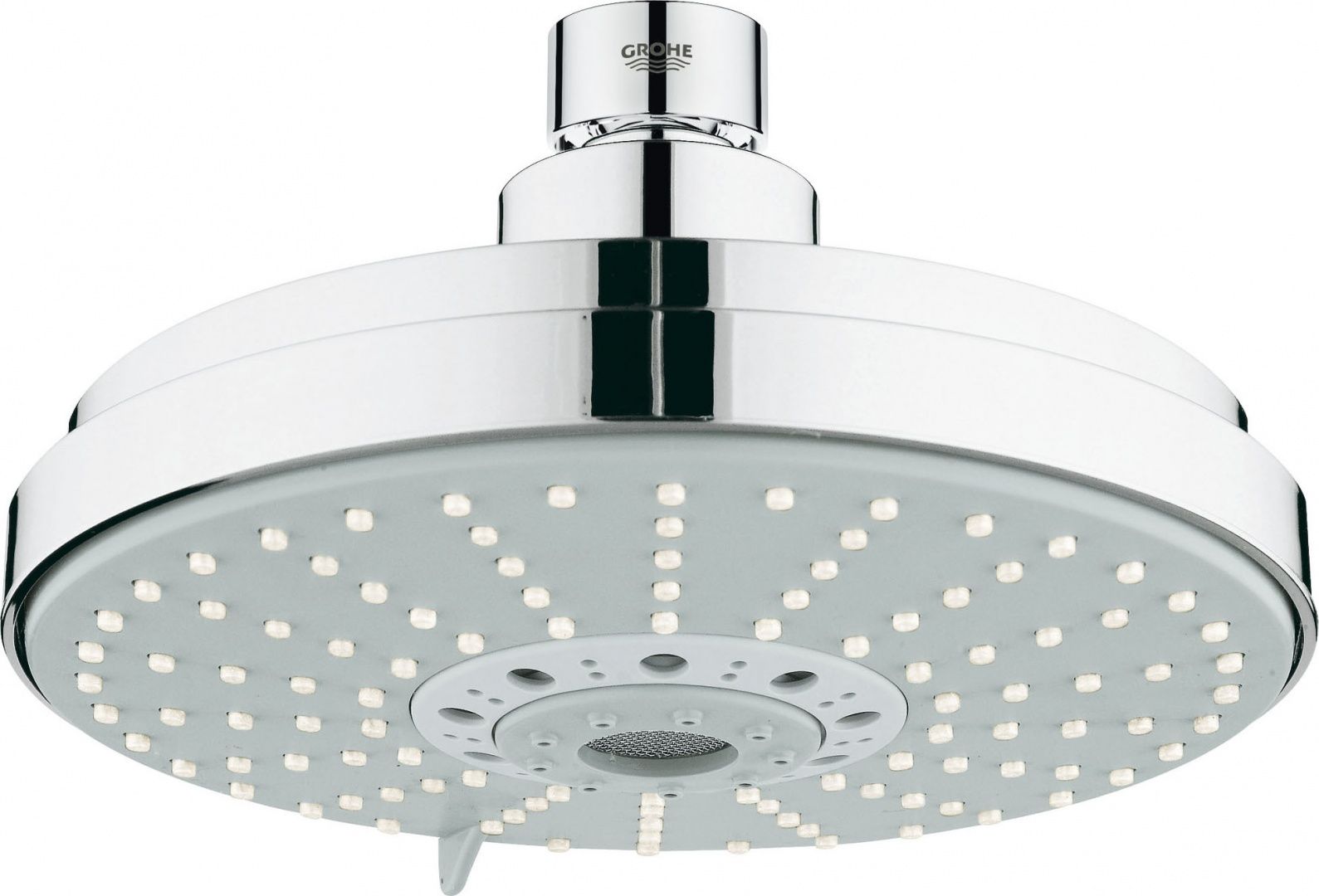 Верхний душ Grohe Rainshower Cosmopolitan 160 27134000 характеризуется удобством и повышенной надежностью в использовании. Поверхность изделия гладкая и блестящая благодаря хромовому покрытию Grohe StarLight. Четыре режима струи максимально комфортны для тела благодаря технологии Grohe DreamSpray. Лейка с шаровым шарниром поворачивается на ±15°, позволяя выбирать наиболее удобный угол подачи воды.
