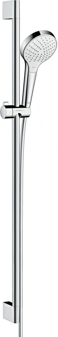 Душевой гарнитур состоит из ручной лейки, шланга и держателя. Набор выполнен в современном стиле, имеет удобное в уходе, долговечное хромовое покрытие. Продуманная конструкция и инновационные технологии гарантируют непревзойденный уровень комфорта при использовании оборудования. Диаметр ручной лейки составляет 11 см. Она оснащена тремя видами струй: Rain, Turbo Rain, IntenseRain. Переключать режимы удобно расположенной на корпусе кнопкой Select. Благодаря шлангу длиной 160 см душем с комфортом смогут пользоваться люди разного роста. Благодаря упорному подшипнику шланг не перекручивается, значит, прослужит дольше. Регулируемый держатель позволяет менять угол наклона лейки до 45 градусов, поэтому вы без труда направите поток воды в нужную вам сторону. Душевой гарнитур комплектуется настенными креплениями из пластика.