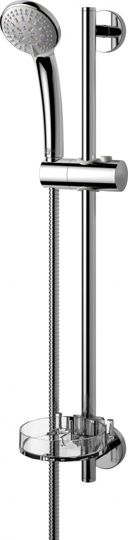 Душевой гарнитур Ideal Standard IdealRain – сантехническое оборудование для современной ванной комнаты, надежность которого подтверждена пятилетней гарантией европейского производителя. Комплект включает в себя ручную лейку, дополненную всеми необходимыми компонентами для ее комфортного использования: штангой, шлангом, держателем и мыльницей. Использующаяся для изготовления набора высококачественная нержавеющая сталь с глянцевым хромовым покрытием устойчива к коррозии и механическим воздействиям. Лейка диаметром 8 см функционирует в трех режимах. Чтобы выбрать удачный, достаточно поворота душевого диска. С помощью эргономичного держателя лейка удобно фиксируется на штанге после окончания водных процедур. С прозрачной пластиковой мыльницей кусковое мыло всегда будет под рукой.