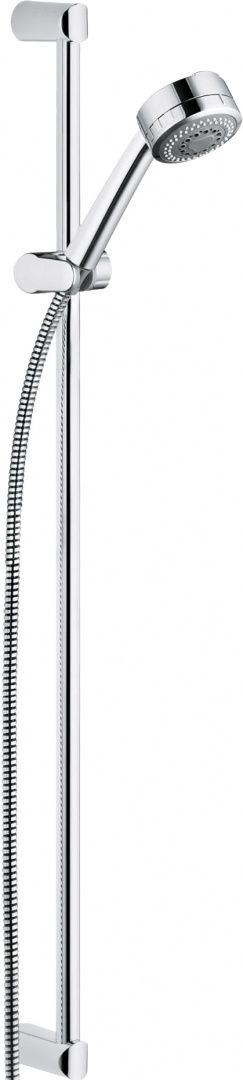 Лаконичный стильный дизайн позволит душевому гарнитуру Kludi Zenta занять центральное место в интерьере современной ванной комнаты. Все металлические поверхности хромированы и не тускнеют со временем. Лейка функционирует в двух режимах: дождевом и массажном. Шланг, утяжеленный коническими гайками, не перекручивается, поэтому манипулировать лейкой очень удобно. Настенная душевая штанга с эргономичным держателем может использоваться человеком любого роста.