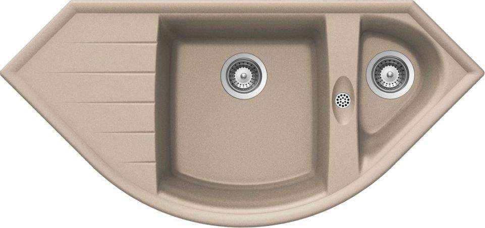 Многоугольная мойка Schock Genius – практичная и удобная модель. Конструкция, устанавливаемая в угол и состоящая из основной и дополнительной чаш, а также левостороннего крыла, позволит эффективно организовать пространство кухни. Она произведена из инновационного материала Cristalite+ бежевого оттенка, по прочности превосходящего натуральный гранит. Изделие выдерживает воздействие высоких температур и не скалывается при случайных падениях в нее посуды. Благодаря гидрофобным свойствам легко чистится и выглядит как новое даже после длительного срока службы.