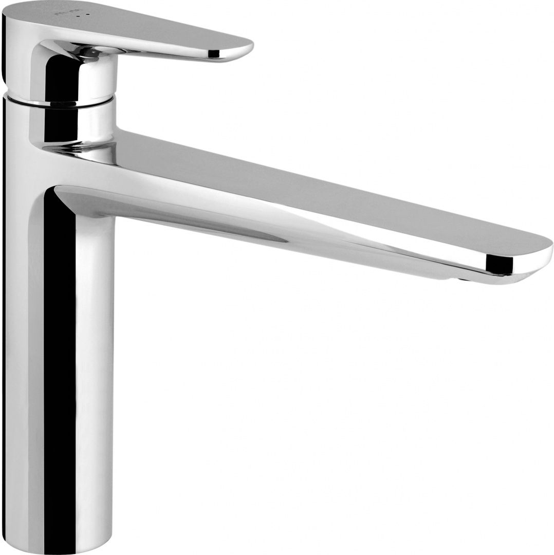 Смеситель для мойки Inspire F5000000 от известного бренда Am.Pm изготовлен из латуни. Хромированная поверхность отполирована до зеркального блеска. Водозапорный механизм –специально спроектированный для АМ.РМ керамический картридж EcoMotion 35 мм. Он позволяет эффективно контролировать расход воды, обеспечивает низкий уровень шума и выдерживает перепады давления. Фиксированная стойка излива обладает достаточной высотой для комфортного мытья посуды и заполнения водой высоких емкостей. Рычаг управления позволяет точно и плавно регулировать температуру и напор воды. Оборудование рассчитано на 500 0000 рабочих циклов.
