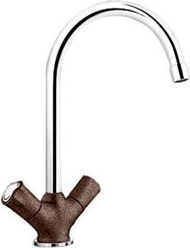 Для создания комфортной рабочей зоны на кухне выбирайте надежный немецкий смеситель Blanco Amona 520776 с традиционным вентильным управлением. Латунная модель удачно впишется в современный интерьер. Эффектное комбинированное покрытие с глянцевым хромированным верхом и прочным основанием из силгранита в цвете «кофе» составит гармоничную композицию с гранитной мойкой Blanco .