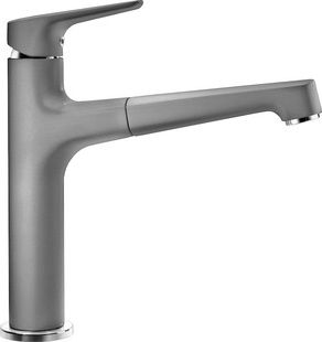 Лаконичный смеситель для мойки Blanco Felisa-S с однорычажным управлением и выдвижным изливом – это практичное и надежное решение для обустройства современной кухни. Он выполнен в цвете «алюметаллик», хорошо сочетается со сталью и стеклом и прекрасно подойдет для кухни, оформленной в стиле хай-тек. Изделие изготовлено из высококачественной латуни, устойчивой к механическому воздействию и высоким температурам. Поверхность покрыта уникальным инновационным материалом, состоящим из натуральной крошки и акриловых смол. Она не царапается и не истирается, сохраняя свою эстетическую привлекательность на протяжении всего срока службы изделия. Керамический картридж организует бесшумную подачу смешанной воды, температура и напор которой регулируются эргономичным рычагом. Поворотный излив оснащен выдвижным шлангом в металлической оплетке, предохраняющей от преждевременного износа. Безопасность эксплуатации в условиях скачков давления в водопроводе обеспечивает обратный клапан, оберегающий трубы от возвратного потока.
