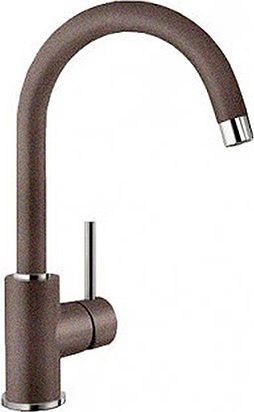 Смеситель Blanco Mida 524208 для кухонной мойки – стильная модель с покрытием под гранитный камень в цвете «кофе». Она дополнит гранитную мойку в том же оттенке, будет гармонично смотреться с мойкой контрастного цвета. Изделие выполнено из прочной нержавеющей стали. Благодаря матовой текстуре поверхности смеситель не требует особого ухода. Высокий дугообразный излив позволяет мыть посуду большого размера. Вращение на 360° обеспечивает свободу действий при пользовании мойкой. Дисковый керамический картридж отлично справляется с работой в условиях жесткой воды и скачков давления. Он обеспечивает плавную регулировку холодной и горячей воды. Аэратор с рассекателем насыщает воду воздухом, делая струю мягкой и равномерной, и задерживает в себе мелкие частицы грязи и ржавчины.